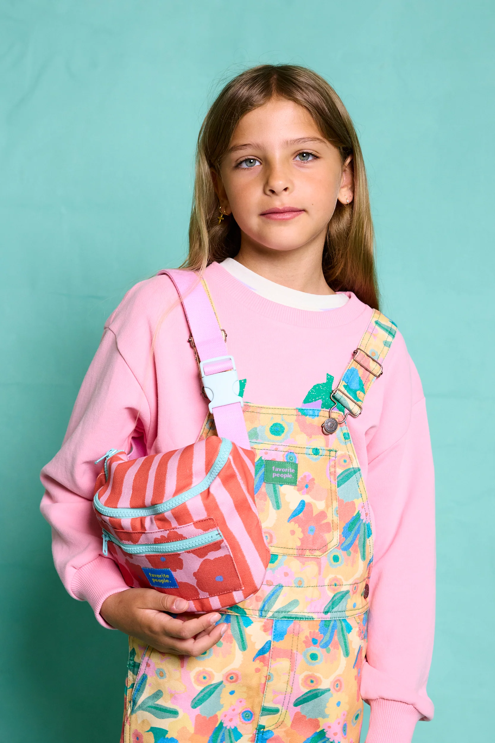 Riñonera súper chula, 100% algodón, con rayas rosas y rojas y flores. Bolsillo lateral exterior con cierre de cremallera. Correa fija ajustable. Hecha en Portugal.
