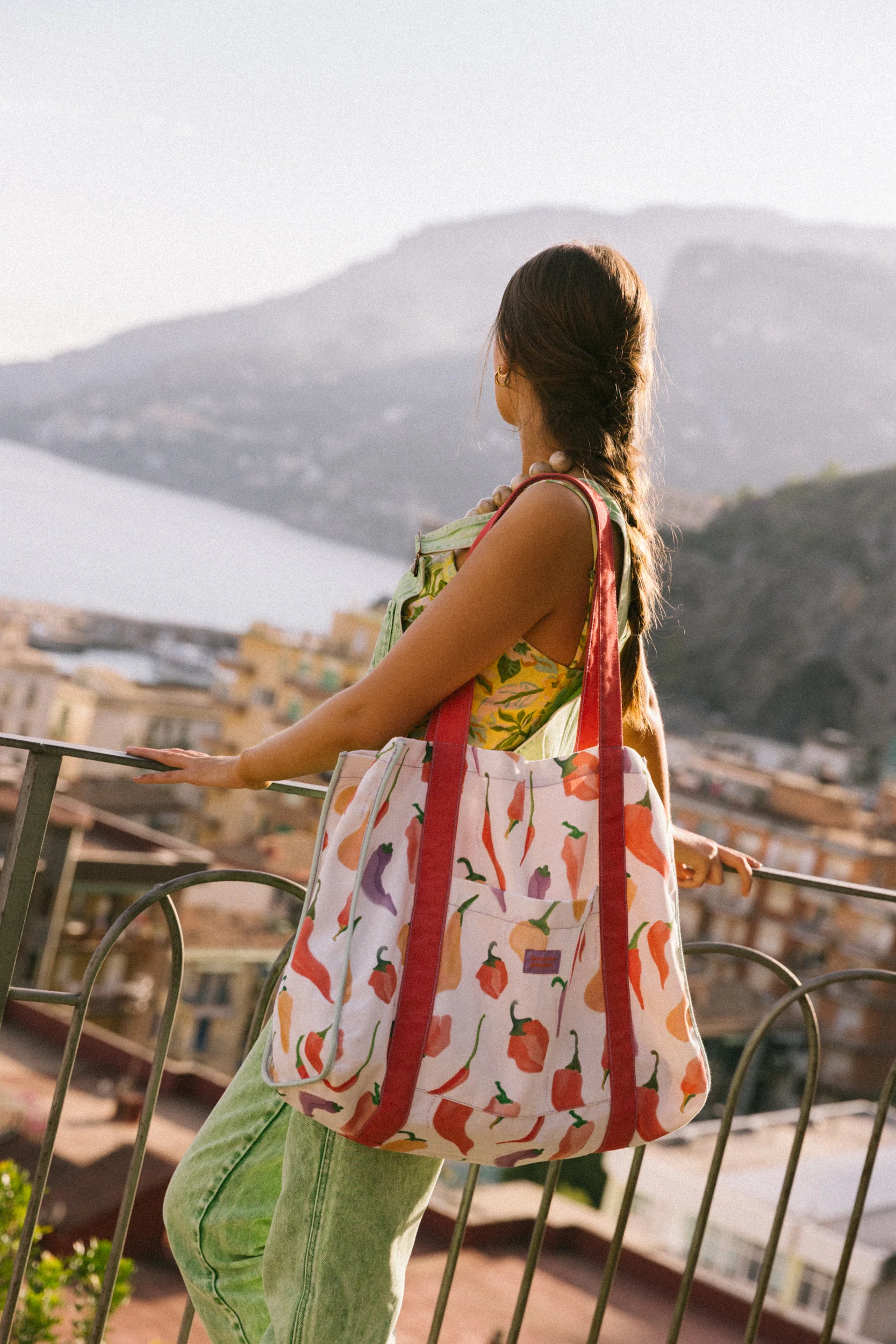 InicioComplementosPEPERONE BAGPEPERONE BAG55,00 € IVA incluido UNICA Elige una opciónULimpiar PEPERONE BAG cantidad Añadir al carrito SKU: N/D Categorías: Accesorios, Complementos, COMPLEMENTOS/BOLSAS Product ID: 58138 Description Descripción Un bolso tote multiusos en color blanco con ilustraciones de verduras, perfecto para días de playa, mercados o salidas cotidianas. Resistente pero ligero. Hecho en Portugal con 100% algodón.
